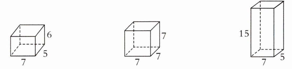 $(6×5+6×7+5×7)×2=214$(平方厘米) $7×7×6=294$(平方厘米) $(15×7+5×7+15×5)×2=430$(平方厘米)