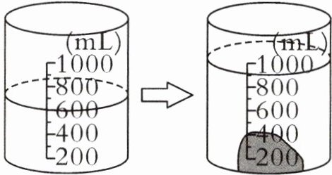 四、跨学科 寓言故事 你听过乌鸦喝水的故事吗?口渴的乌鸦喝不到瓶子里的水,于是它想到往水瓶里扔石头。它不断地向瓶子里扔石头,瓶子里的水面越升越高,最后它终于心满意足地喝到了水。如右下图,乌鸦往杯子里放入一块石头,杯子里的水面升高了。你能根据水面高度的变化算出石块的体积吗?