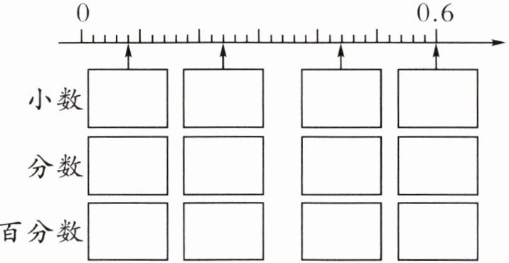 二、分别用小数、分数和百分数表示下面直线上的各点。