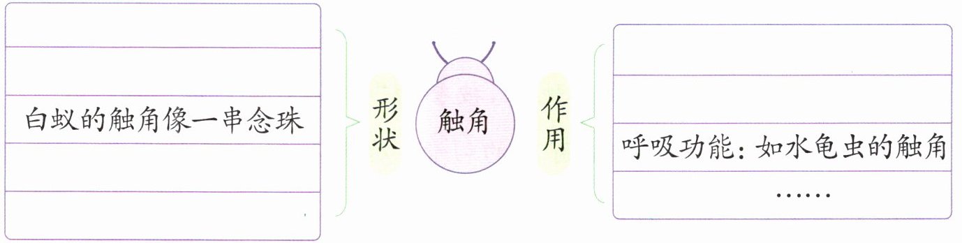 2 整合信息 读了短文,梳理了解到的昆虫触角的知识,补全下图。(3分)