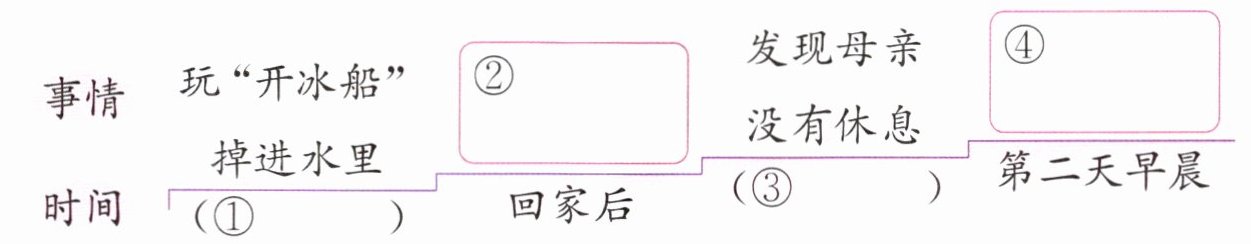 事情 玩“开冰船” ② 发现母亲 ④