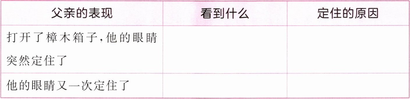 2 理解阐释 父亲的眼睛两次“定住了”,请根据下表进行理解。(4 分)