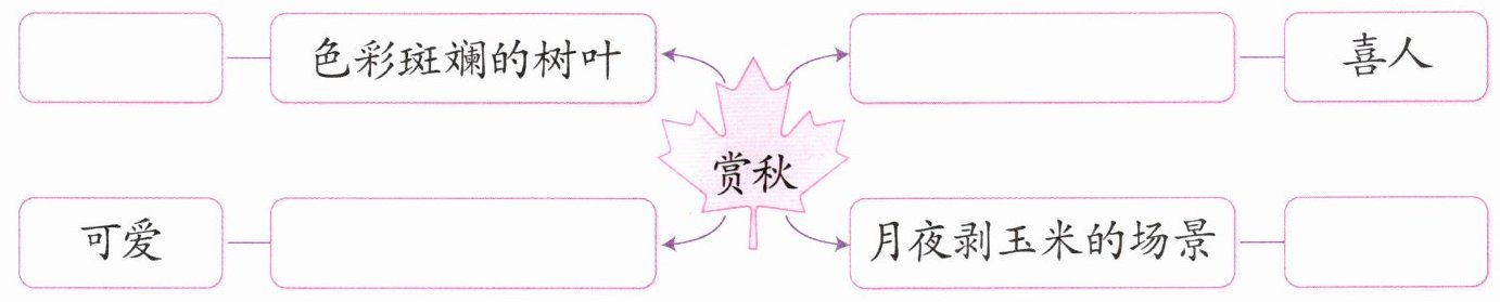 $\begin{matrix} □ & 色彩斑斓的树叶 & □ & 喜人 \\ 可爱 & □ & 月夜剥玉米的场景 & □ \\ \end{matrix}\\ $