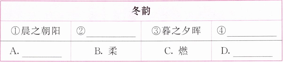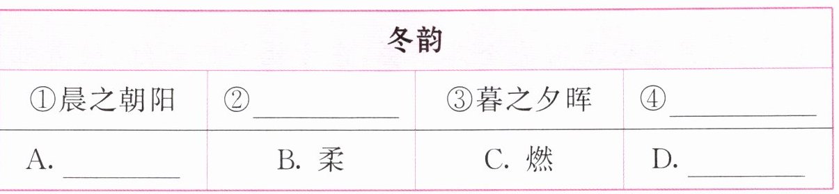 |①晨之朝阳|②____|③暮之夕晖|④____|