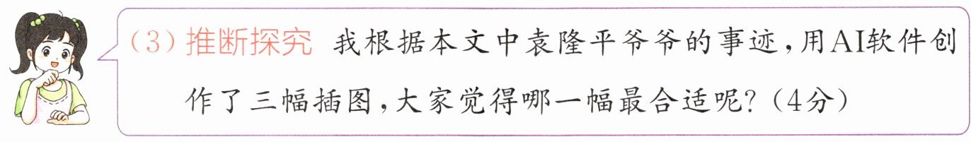 (4)推断探究 有同学认为袁隆平爷爷是进行农业研究的科学家,他的事迹和我们小学生关系不大。你同意这种说法吗?为什么?(4分)______