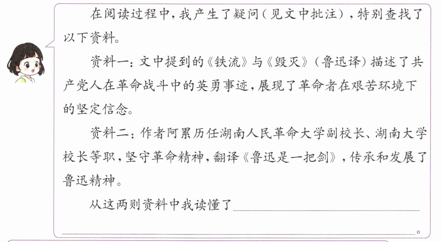 联系第八单元的学习,我对结尾“鲁迅先生是同我们一起的!”有这样的理解: 。