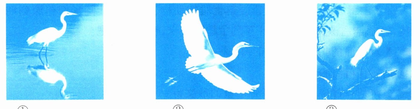 1. 优优拍摄了一组白鹭的照片,请你欣赏,并为每张照片起一个名字。