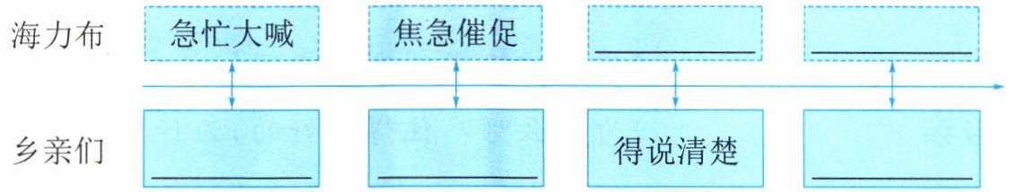 (1)仔细研读海力布劝说乡亲们的话语,以及乡亲们每一次被劝说后的反应,并提取关键词,完善思维导图。