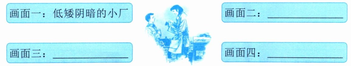 三、下面是同学们在表演课本剧时,小啦拍摄到的宝贵镜头。请你欣赏,并完成练习。