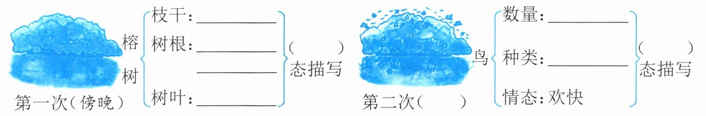 1. 课文分别描写了傍晚和早晨两次看到“鸟的天堂”的情景,下列描述有误的一项是(