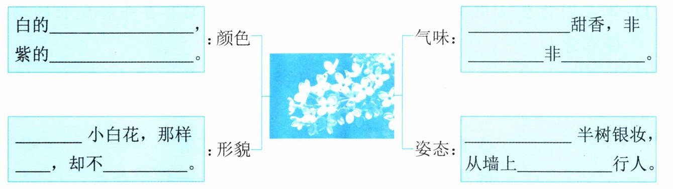 三、小练还绘制了关于丁香花的思维导图,请你和他一起完成吧。