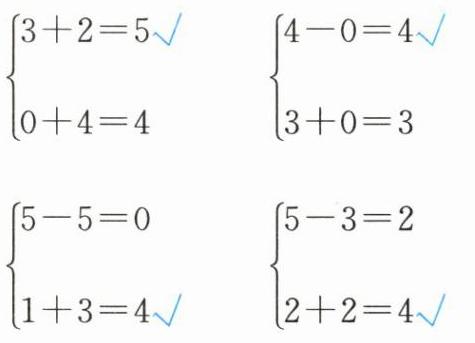 $\left\{\begin{array}{l} 5-5= \\ 1+3= \end{array} \right. $