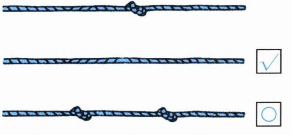 4 在最短的后面画“√”,在最长的后面画“○”。