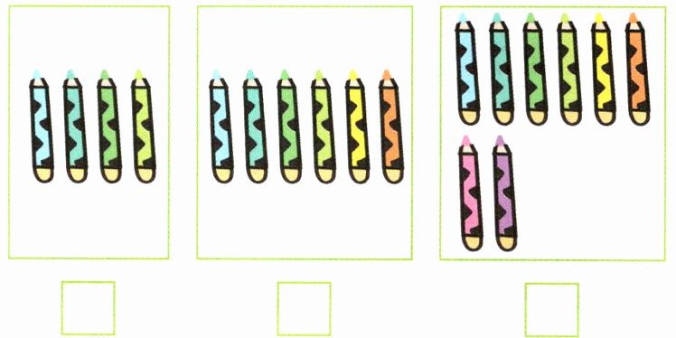 5 xiǎo míng yǒu liǎng hé là bǐ yí gòng 小 明 有 两 盒 蜡 笔 ,一 共 zhī xià miàn nǎ yì hé bú shì tā 10 支 。下 面 哪 一 盒 不 是 他 de zài zhèng què dá àn de lǐ 的 ?在 正 确 答 案 的 □ 里 huà 画 “√”。