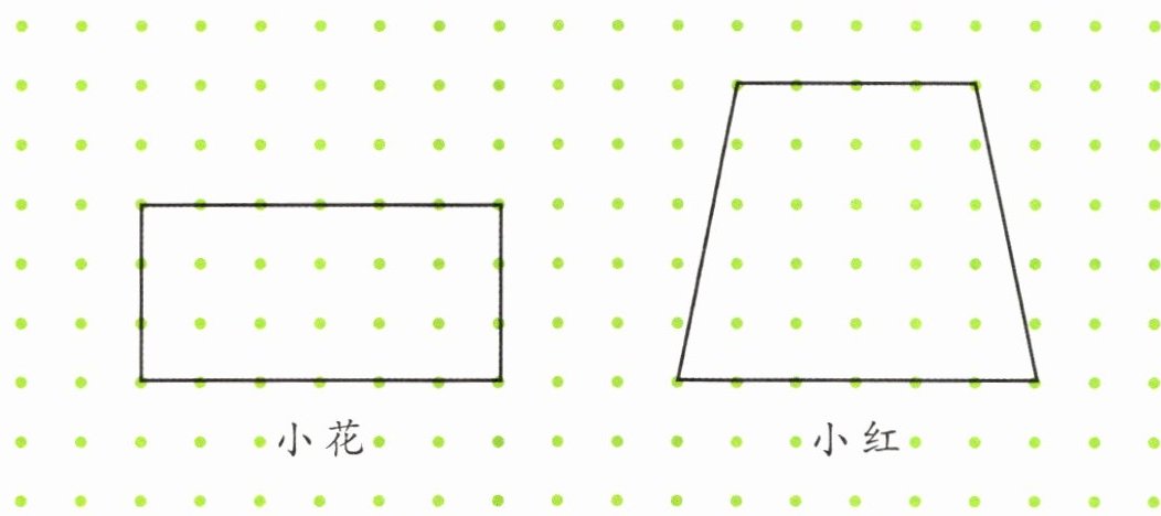 小 花 和 小 红 分 别 围 出 一 块 草 地 ,谁 围 的 草 地 大 ? 给 它 涂