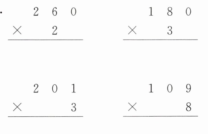 2. 芳芳说:“乘数的末尾有几个0,积的末尾也一定有几个0。”下面算式(