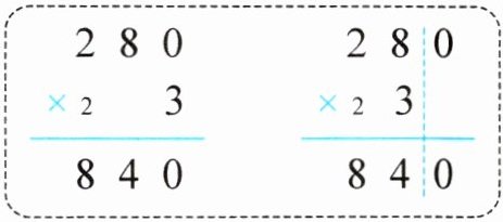 6. 如图,丽丽用两种竖式计算$280× 3$,下面对于这两种竖式说法不正确的是(