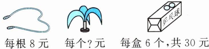(2)买 2 根跳绳的钱正好可以买 4 个毽子,每个毽子多少元?