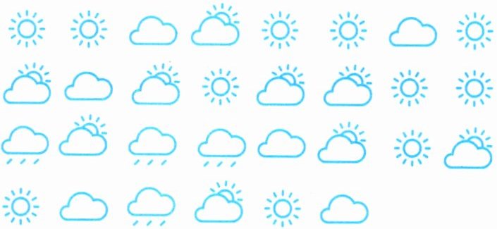 3. 根据芳芳记录的一个月天气情况(如下图)进行整理统计。