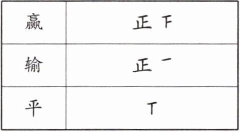 【点拨】本题容易错在没有理清问题与表格中统计结果的关系。统计表中记录的是苗苗玩游戏的结果,而豆豆玩游戏的输赢结果正好和苗苗相反,即苗苗赢的次数是豆豆输的次数。