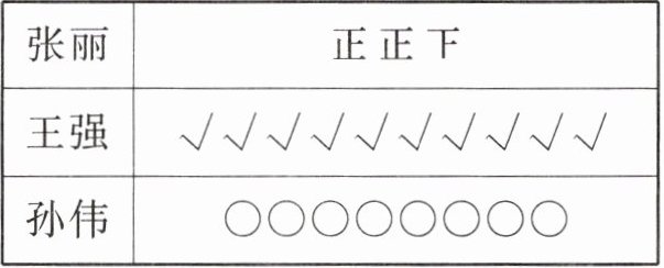 1. 二(3)班新学期选举班长,要从候选人张丽、王强、孙伟这3名同学中选出一名(每人只投一票)。