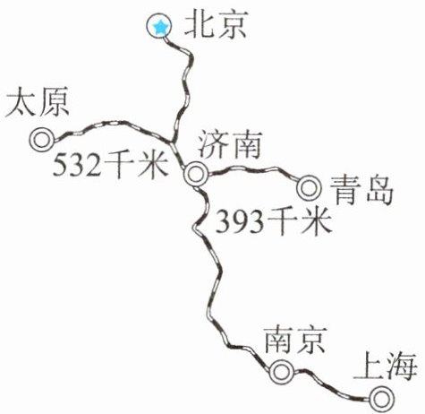 (2)南京到上海的铁路大约长300千米,估一估南京到济南、南京到北京的铁路大约各长多少千米。