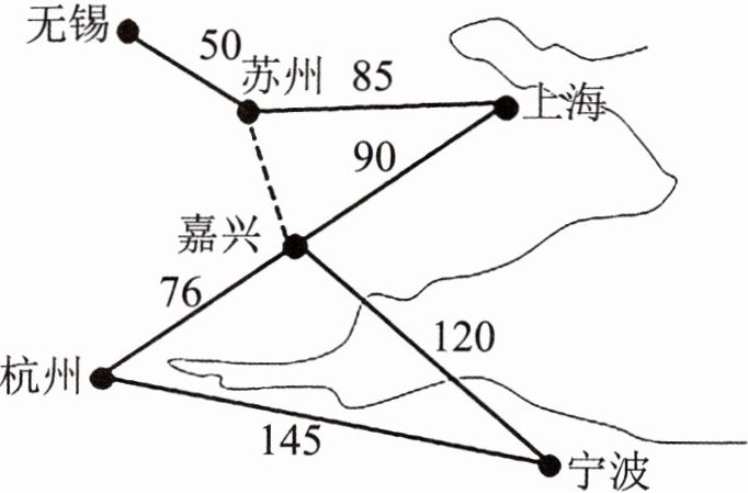 8.①90+76=166(千米) ②50千米 ③85千米 ④76千米 ⑤50+85=135(千米) ⑥145千米