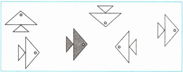 5. 下面哪些鱼不能通过平移与灰色小鱼重合,把它们涂上颜色。