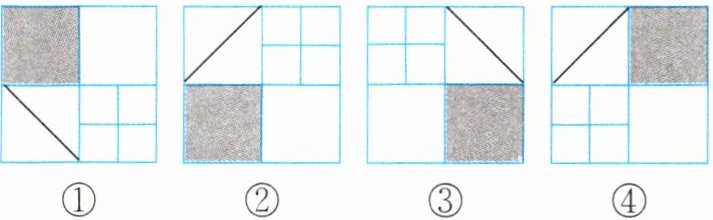 (5)如图,把一张正方形纸对折两次,并剪去一个小正方形,打开后是( )。