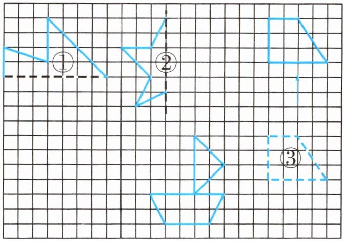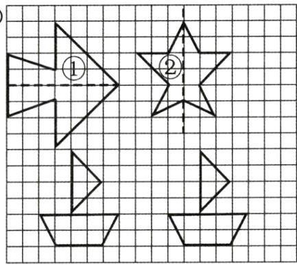 (2)分别画出图①和图②的另一半,使它们成为轴对称图形。