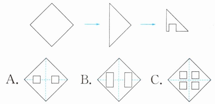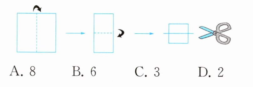 7. 如图,小宇将一张纸对折两次,然后将其剪开。剪开后,会得到(