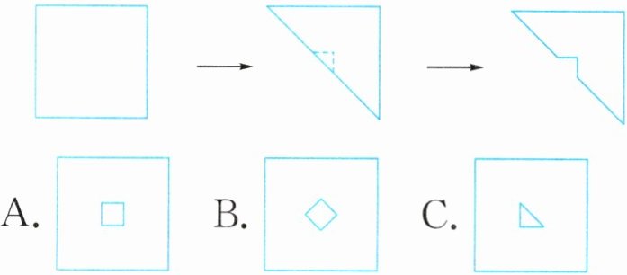 2. 如图,把一张正方形纸对折,沿虚线剪去一个三角形,再打开,得到的图案是(