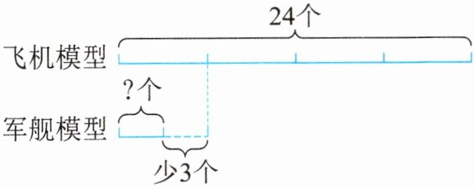 (2)24÷4-3=3(个) 解析:根据图形可知,军舰模型比飞机模型平均分成的一份还要少3个。