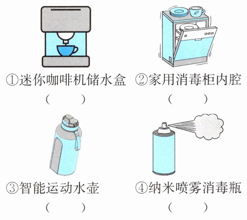2. 【生活实践】随着科技的发展,生活中出现了许多新式容器。请判断以下容器的容量是否超过1升,超过的用“□”表示,不超过的用“△”表示。