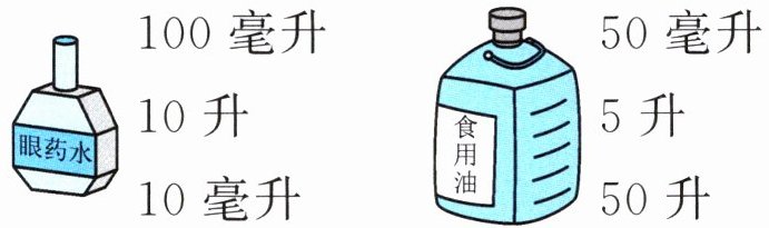 4. 你知道下面这些容器的容量吗?请把合适的结果圈起来。