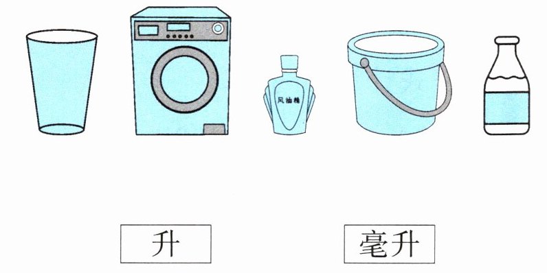 4. 把 3 个量杯里的水全部倒入水壶后,还差 1000 毫升才能倒满,水壶的容量是多少毫升?合多少升?