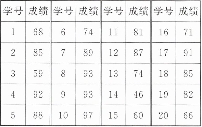 四年级二班 20 名学生参加防电信网络诈骗的竞赛成绩统计表
