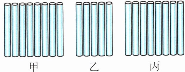 如图,甲有8根小棒,乙有5根小棒,丙有8根小棒,要使三人的小棒根数相等,需从甲处拿(