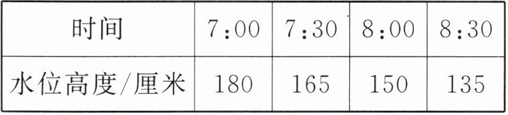 3. 一座大型水库一天从 7:00 开始放水,管理员赵叔叔每 30 分钟观测一次水位下降情况,下面是他的观测记录。