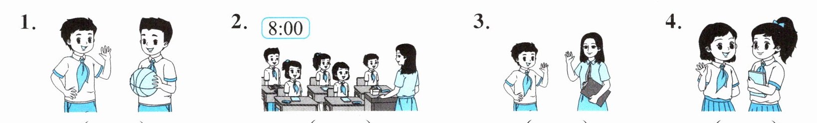 六、[生活情境] 新学期开始了,大家在彼此打招呼。请根据所给图片,选择相应的对话。