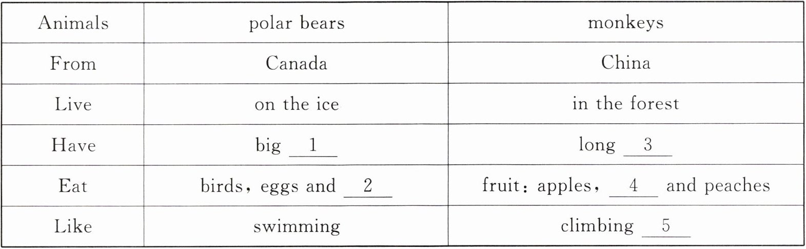 1. feet 2. fish 3. tails 4. pears 5. trees