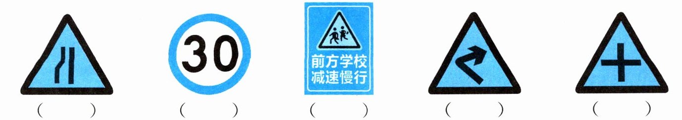 Please look at the first sign. It's a sign with the number "thirty" on it. When we see this sign,we must not drive at more than thirty kilometres(千米) an hour. We must drive carefully when we see the second sign,because we are getting close to a crossing now. The third sign tells us there is a sharp turn. The fourth sign shows that the road gets narrow(狭窄的),so it is necessary(必要的) to drive slowly and carefully. The last sign means there is a school on the street. We must look carefully and go slowly in case of accidents(事故).