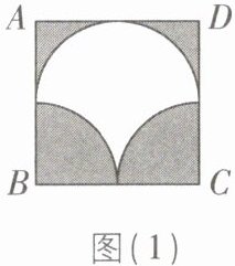 3 [2025福建福州调研]剪图与拼图(要求画出裁剪线,并画出拼接成的图形的示意图).如图(1),在边长为2的正方形纸片ABCD上,以它的中心为圆心,1为半径向上作半圆;再分别以B,C为圆心,1为半径作四分之一圆,剪去图(1)中阴影部分,得到图(2)所示的纸片.