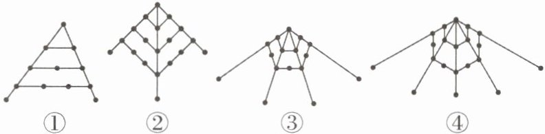 6[2024青海中考]如图是由火柴棒摆成的图案,按此规律摆放,第(7)个图案中有