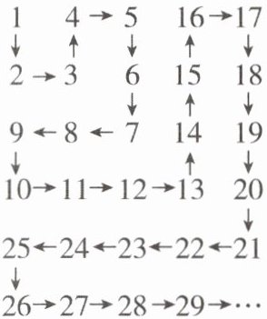 3[2024山东潍坊中考]将连续的正整数排成如图所示的数表.记$a_{(i,j)}$为数表中第i行第j列位置的数字,如$a_{(1,2)}= 4,a_{(3,2)}= 8,a_{(5,4)}= 22$.若$a_{(m,n)}= 2024$,则$m=$