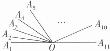 6[较难]如图,已知$∠A_1OA_{11}$是一个平角,且$∠A_3OA_2 - ∠A_2OA_1 = ∠A_4OA_3 - ∠A_3OA_2 = ∠A_5OA_4 - ∠A_4OA_3 =… = ∠A_{11}OA_{10} - ∠A_{10}OA_9 = 3^{\circ}$,则$∠A_{10}OA_{11}$的度数为
