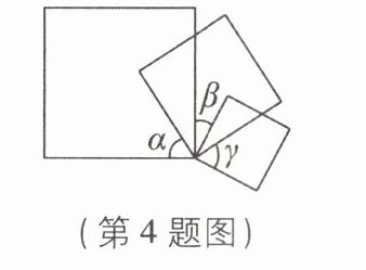 4[2025福建泉州期末,较难]如图,将三个大小不同的正方形的一个顶点重合,则$∠α$,$∠β$,$∠γ$三个角之间的数量关系为( )