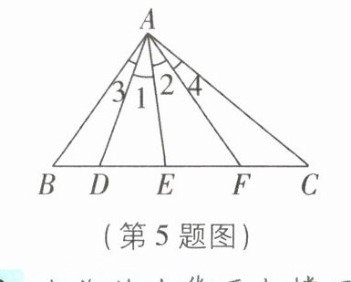 )①AD平分$∠BAE$;②AF平分$∠EAC$;③AE平分$∠DAF$;④AF平分$∠BAC$;⑤AE平分$∠BAC$.