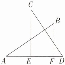 1 [中]如图,已知$AB⊥CD$,$AB= CD$,$E$,$F是AD$上的两个点,$CE⊥AD$,$BF⊥AD$。若$AD= a$,$BF= b$,$CE= c$,则$EF$的长为(