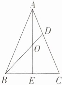 6 [中]如图,在$△ABC$中,$AB= AC$,点O在高AE上,且$OA= OB$,连接BO并延长交AC于点D.